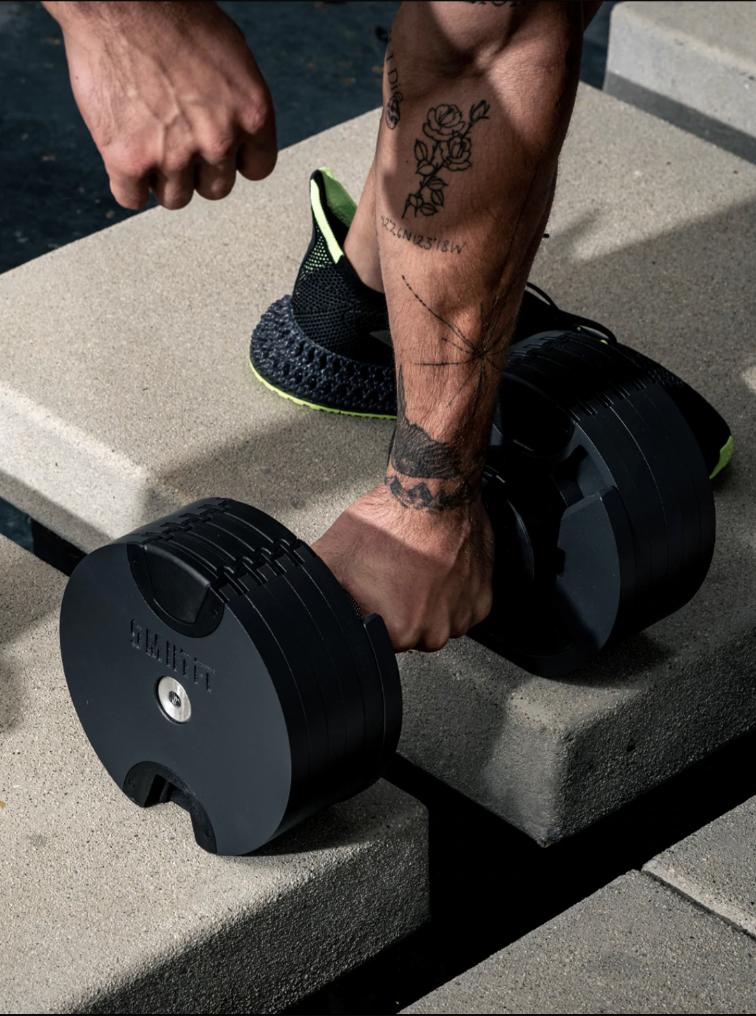 At SMRTFT, we only sell the most innovative, highest-quality fitness products on the market. SMRTFT NUOBELLs feel like traditional dumbbells. They have comparable knurling (the horizontal and vertical crossing lines on the handle). We aim for a mid-range knurling feel. The size of the dumbbells, at any weight from 5 to 80 lbs, is similar to those you find at your local gym. Also, we arrange the plates so that you don't have a bar sticking out the end, no matter the weight. Many other adjustable dumbbells are designed differently and feel "weird" for seasoned weight lifters.